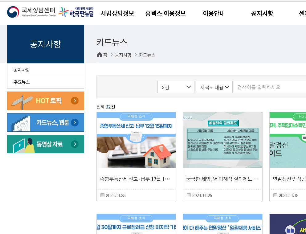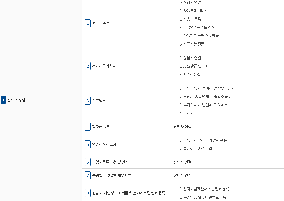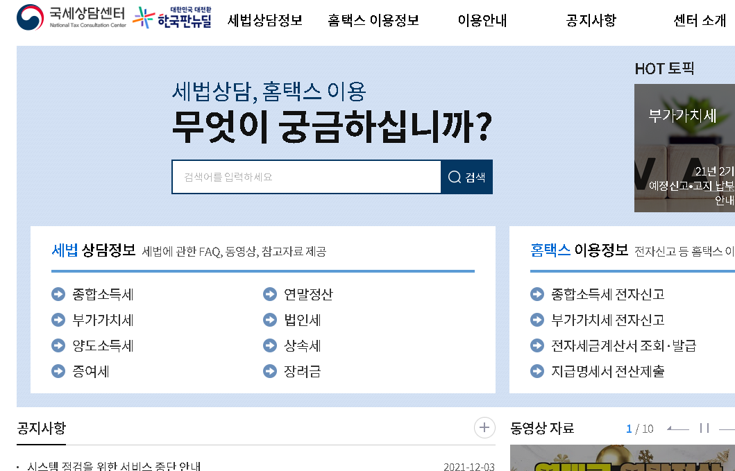 국세상담센터도 운영 중이며 공식홈페이지에서는 다양한 서비스나 정책 정보가 확인이 되어지고 있어요.