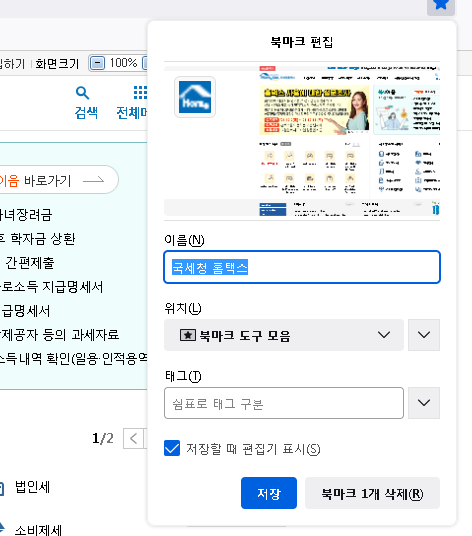 평소에 자주 들어가시는 사업자 분들은 이렇게 만들어두시는게 필수 작업이라고 해요. 특히 전자세금계산서의 발행이 잦으시면 국세청 홈택스 홈페이지에 들어가는 경우가 많아 바로가기로 만들어두면 편해요.