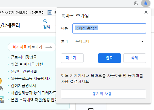 굳이 설정을 해둔다면 바로가기 아이콘으로 국세청 홈택스 홈페이지를 만들 수는 있을 것 같네요.