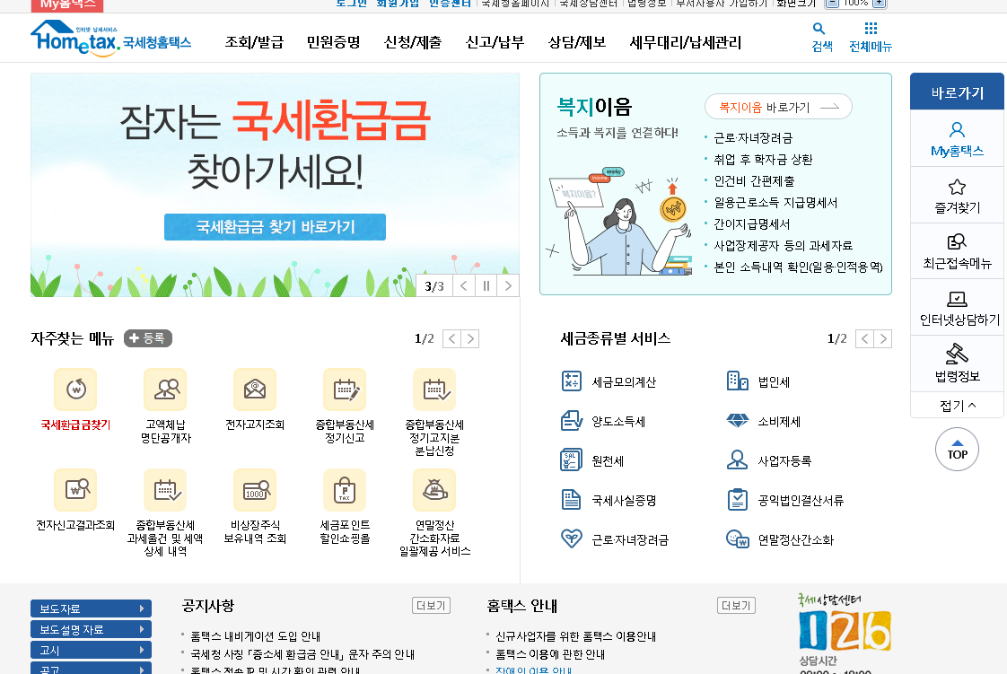 보통 세무사 분들이 접속을 많이 한다고 하구요. 직접 세무처리를 하시는 사업자 분들도 홈택스에 많이 들어가게 됩니다.