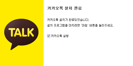 실행부분을 체크해제 하셔도 바탕화면에 아이콘으로 바로가기가 생성이 되어 있기 때문에 열어주시면 되네요. 여기까지가 카카오톡 pc버전 다운로드와 설치를 마쳤네요.