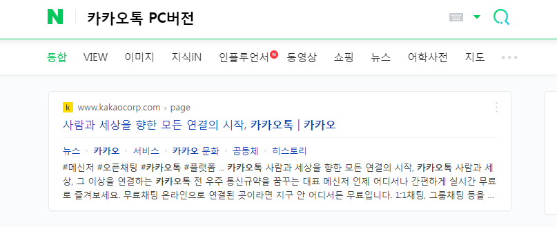 이렇게 검색을 하시면 카카오톡 홈페이지가 찾아지며, 여기에서 카카오톡 pc버전 다운로드를 진행하실 수 있다고 해요. 어렵지 않게 검색을 이용할 수 있기에 편리해요.
